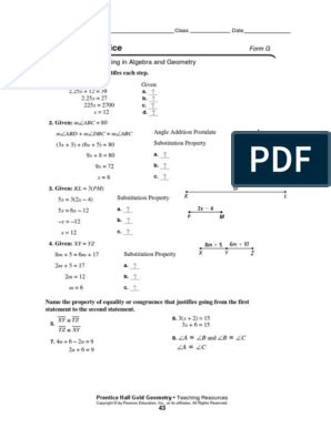 Read 2 5 Practice Reasoning In Algebra And Geometry Form G Answers Epub